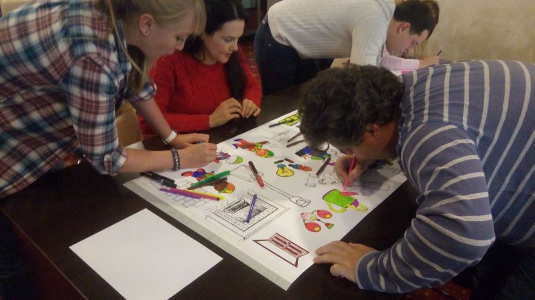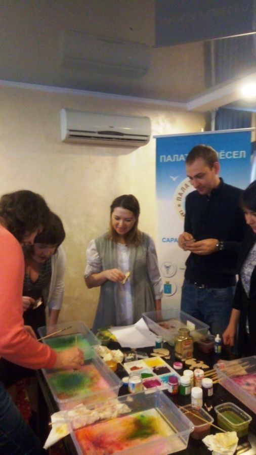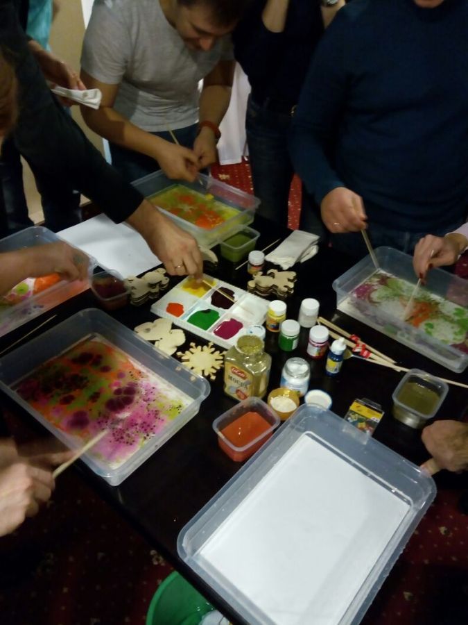 В ходе корпоративного мероприятия участники класса собирали миниатюрные модели домиков, мастерили народную домодельную куклу, создавали картины из соломы и осваивали азы турецкой живописи на воде «Эбру». Каждый мастер-класс сопровождался не менее интересным экскурсом в историю возникновения различных направлений народно-художественных промыслов. Так, Римма Портнова рассказала собравшимся о том, что «эбру» – турецкая техника рисования на воде специальными красками — вошло в список нематериального культурного наследия ЮНЕСКО. Светлана Белоногова поделилась знаниями об истории русского национального костюма.