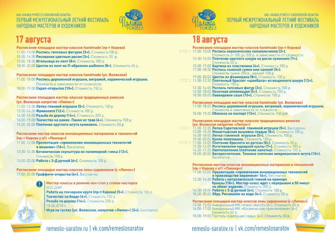 Подробную программу и расписание мастер-классов скачивайте у нас на сайте (см.ниже) и на официальной странице фестиваля ВКонтакте https://vk.com/palitraremeselfest .
