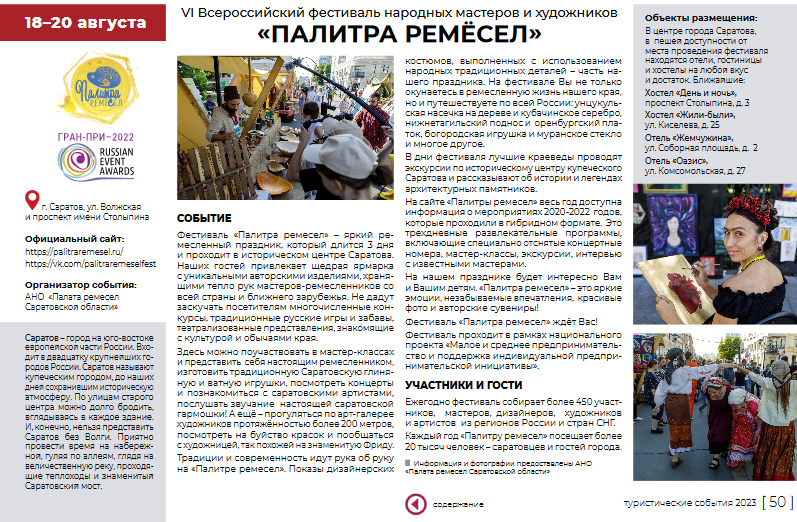 Сборник размещен на официальном сайте Национальной премии Russian Event Awards, гран-при которой был удостоен фестиваль "Палитра ремесел" в прошлом году.